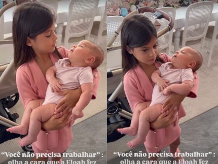 No registro, Sophia aparece balançando a pequena no colo, com um look todo arrumado e rosa. No final do vídeo, Maíra pega Eloah nos braços e diz: “Tchau, a gente vai trabalhar hoje, é, eu e sua irmã. Já já é você, se bem que você não precisa”, brinca. A pequena logo reage à frase da mãe, rindo.