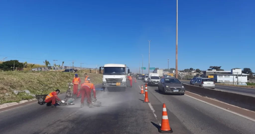 O fluxo intenso no trecho, no sentido Vitória, ocorre por causa de obras de recapeamento Fonte: Itatiaia