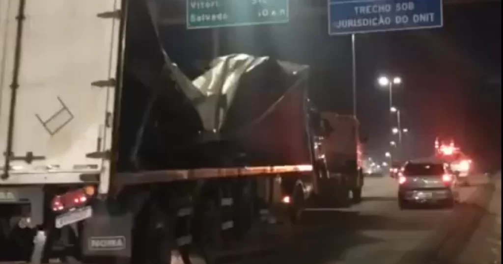 A pista estava com faixas bloqueadas por causa do tombamento de uma carreta carregada com 26 toneladas de bobinas de plástico