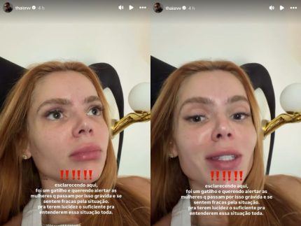 Mais cedo, a influenciadora havia feito um desabafo nas redes sociais sobre experiências de abuso físico e psicológico durante a gestação de sua primeira filha, Sofia, hoje com 8 anos. Na ocasião, ela afirmou que apenas recentemente passou a compreender com clareza o que viveu naquele período: “Sofia tem 8 anos, e só hoje consigo ver claramente o que passei na minha gravidez em relação ao abuso físico e psicológico que sofri e achei que era normal”, declarou. Sem citar nomes, Thaís contou que, na época, não recebeu o apoio que esperava de pessoas próximas.