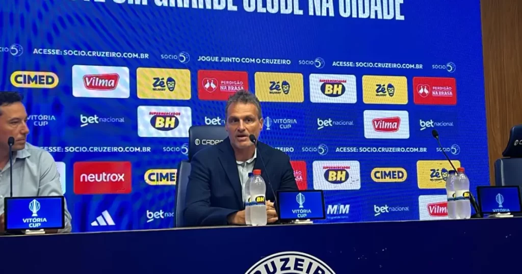 “Obrigado! O que eu posso dizer é que eu estou muito feliz, já me sinto em casa. Primeiro, dizer que é uma honra ter a oportunidade de trabalhar em um clube da grandeza do Cruzeiro”, iniciou Bruno Spindel.