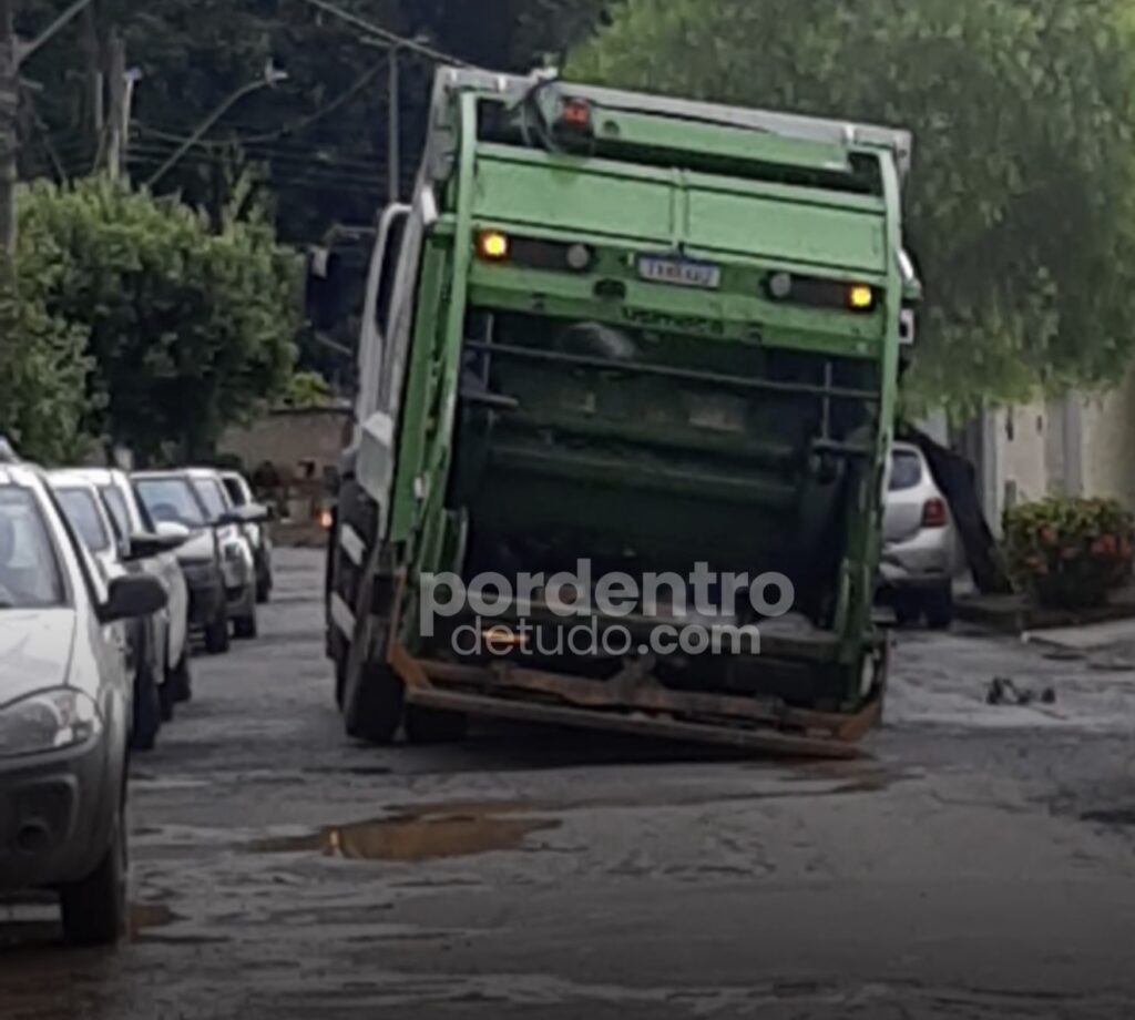 O post Asfalto cede e caminhão de lixo afunda em Pedro Leopoldo apareceu primeiro em Por Dentro de Tudo.