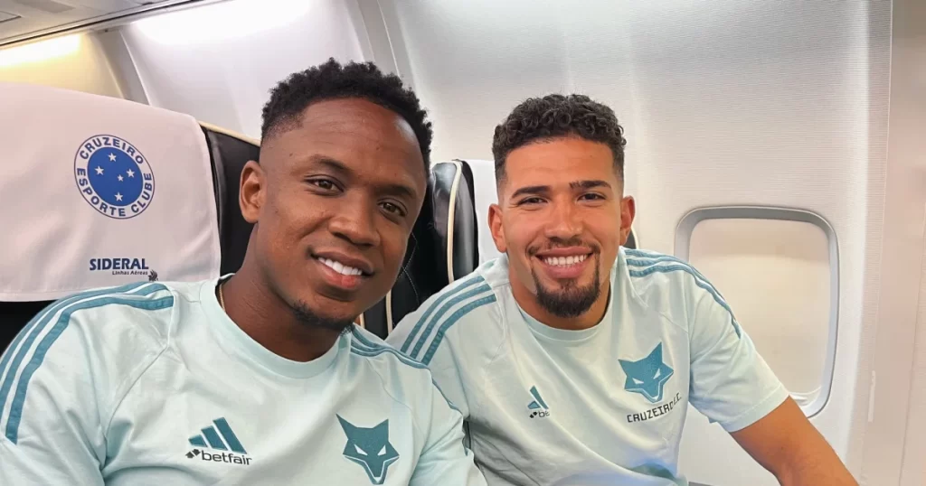Em foto publicada pelo clube nas redes sociais, o colombiano aparece com outros jogadores no avião que leva a delegação celeste para a capital paulista.