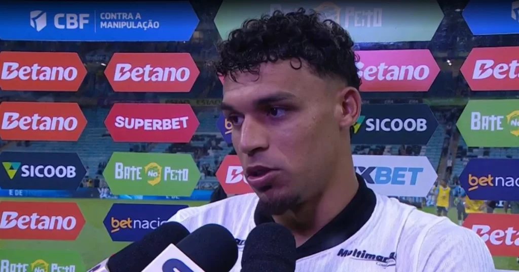 “Como você disse, foi uma partida difícil, com um a menos, praticamente, o jogo todo. A gente brigou, a gente lutou o máximo que deu, infelizmente, tomamos dois gols e fazer um foi difícil. Infelizmente não foi necessário para conseguir um impacto e uma vitória. Sobre o Everson, a gente tenta sempre aproveitar essa bola, é um goleiro que tem muita qualidade com os pés, então a gente continua aproveitando essa bola para fazer gols”, disse Victor Hugo à Premiere após a partida, ainda no gramado da Arena do Grêmio.