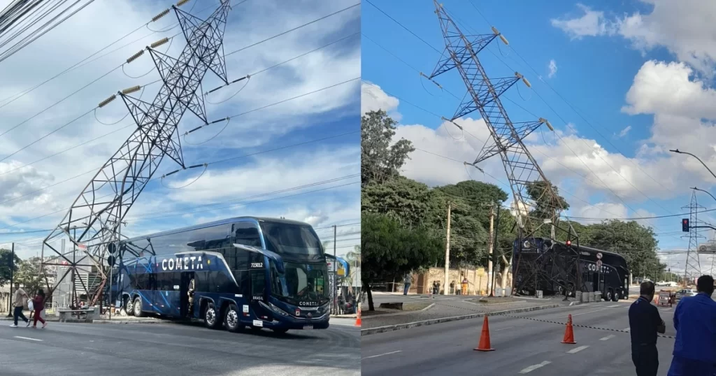 ônibus derrubar uma torre de transmissão de energia elétrica