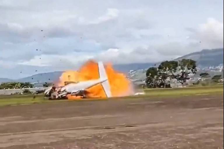 Testemunhas gravaram o momento em que a aeronave, um modelo Piper PA-31T1 Cheyenne I, acelerava pela pista e decolou, mas então inclinou de forma brusca e caiu de volta ao solo. O impacto provocou uma explosão e incêndio.