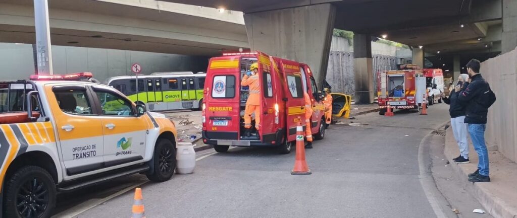 Cinco pessoas com menos de 30 anos ficaram feridas após um carro bater contra uma viga de proteção no Viaduto Leste, em Belo Horizonte, na manhã deste sábado (14). O acidente ocorreu por volta das 7h no acesso ao Complexo da Lagoinha e mobilizou equipes do Corpo de Bombeiros, do Samu, da Polícia Militar e da perícia da Polícia Civil.