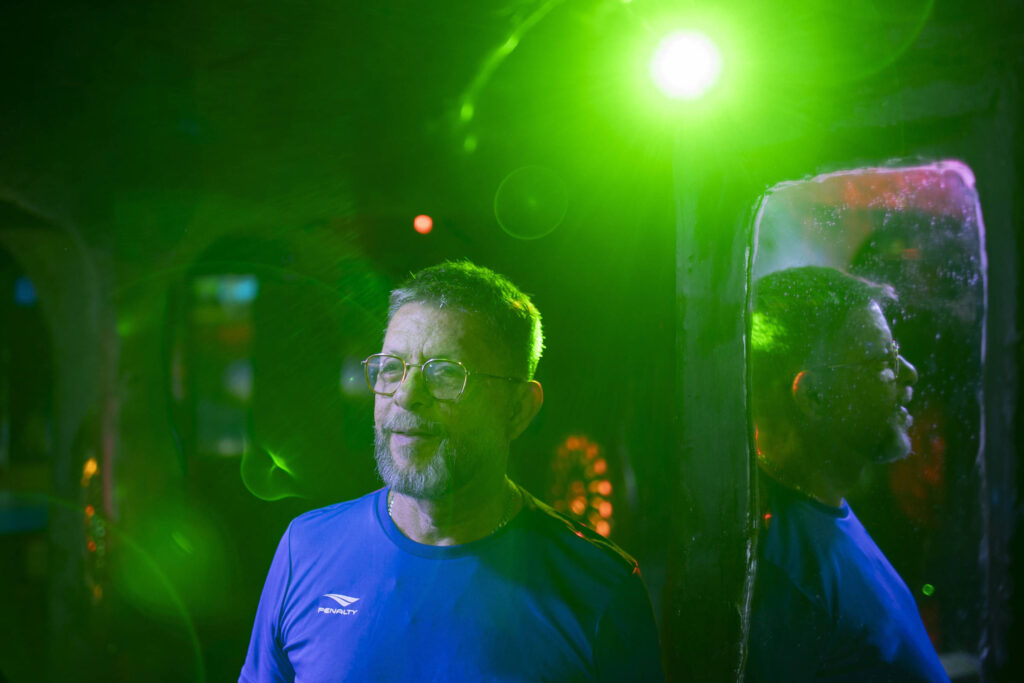 Funcionário há 31 anos, João Alexandre abre a porta de ferro que dá acesso à boate, onde uma confraria masculina se encontra as sextas e sábados para se divertir. O espaço, embora pequeno, acomoda 200 pessoas, com paredes onduladas, simulando uma caverna, com mesas e sofás nos cantos, um bar amplo, e sete TVs exibindo clipes.