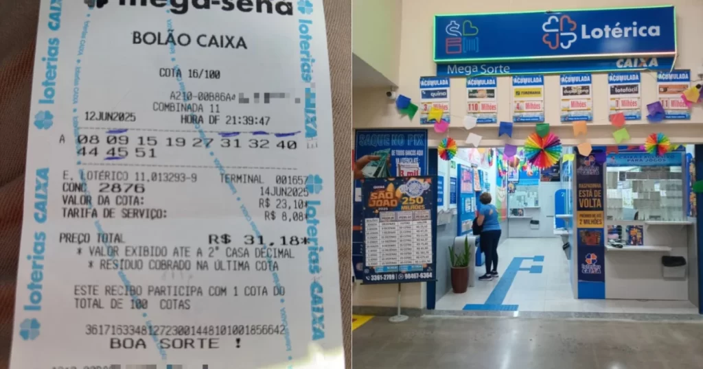 Um bolão de Contagem, na Grande BH, bateu na trave e quase levou R$ 100 milhões no concurso 2876 da Mega-Sena, sorteado sábado (14). O jogo premiado com a quina tinha 11 dezenas e foi feito na Mega Sorte Loterias, que fica dentro do Itaú Power Shopping. O prêmio total foi de R$ 730 mil, a ser dividido por 100 cotas (R$ 7,3 mil para cada). Outras cinco apostas de Minas acertaram a quina.