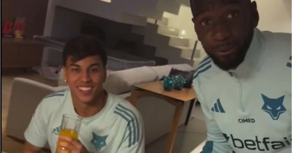 Bolasie e Kaio Jorge comem frango frito após vitória contra o Atlético
