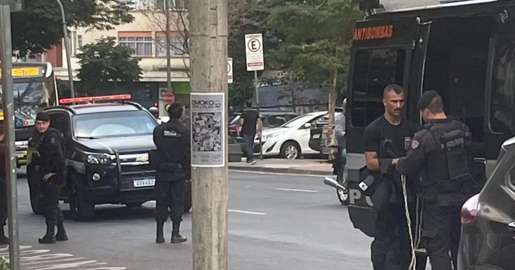 O Batalhão de Operações Policiais Especiais (Bope) foi ao Sindicato dos Jornalistas Profissionais de Minas Gerais, na avenida Álvares Cabral, no Centro de Belo Horizonte, na tarde desta terça-feira (22), depois de ser acionado pela Polícia Militar (PM) por causa de uma suspeita de bomba.