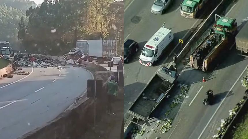 De acordo com a concessionária Arteris Fernão Dias, o motorista não ficou ferido. O veículo colidiu contra a mureta de proteção central antes de tombar. Para a remoção do caminhão e da carga, a rodovia precisou ser bloqueada nos dois sentidos.