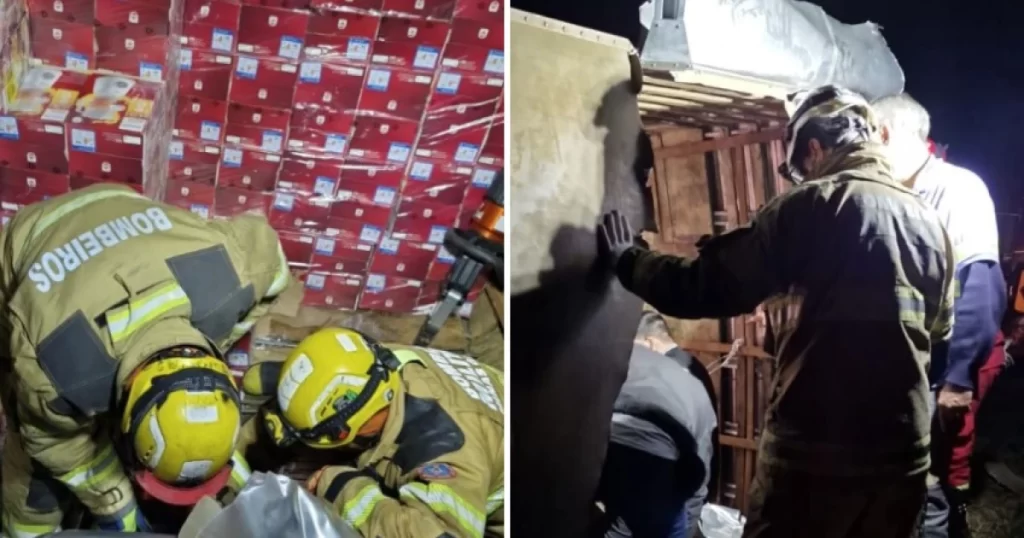 Segundo o Corpo de Bombeiros, o corpo do motorista, que estava sozinho no veículo, foi encontrado sob o baú da carreta. “Para possibilitar o acesso à vítima, os militares realizaram o corte da parte superior do compartimento de carga, além da retirada parcial da carga de eletrodomésticos. Em seguida, foi necessário também o corte lateral do baú, permitindo a entrada da guarnição e o alcance da vítima”, informou a corporação.