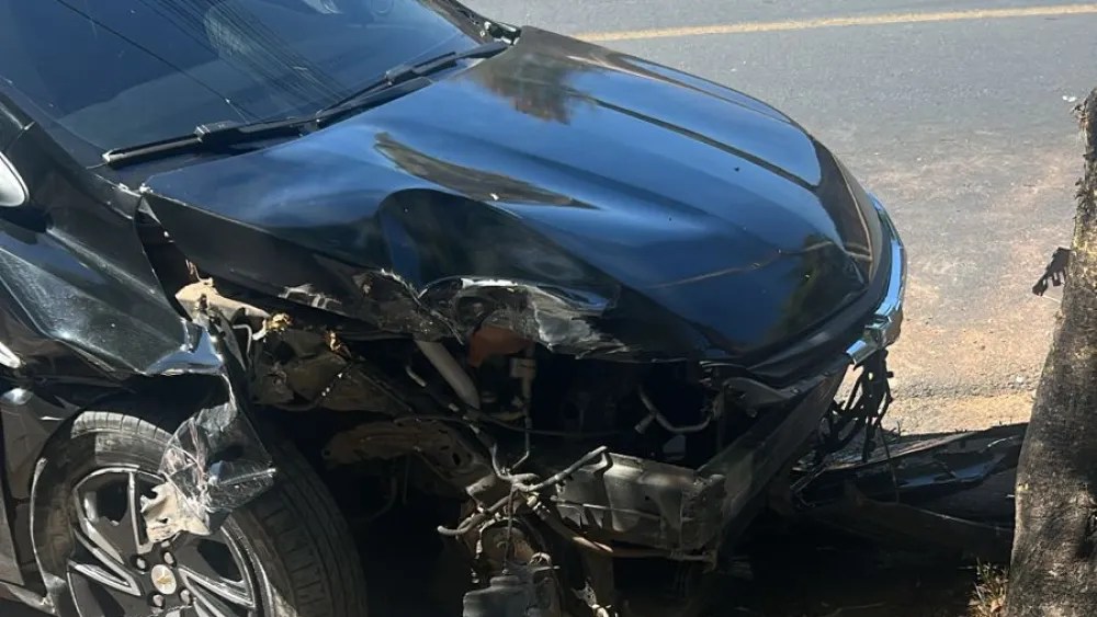 Um veículo invadiu a calçada e colidiu contra uma árvore em uma das avenidas do Distrito Industrial Jatobá, na região do Barreiro, em Belo Horizonte. De acordo com a Polícia Militar, o automóvel, um Ônix preto, sofreu danos consideráveis na lateral direita, incluindo uma roda amassada e um pneu furado. O motorista não foi localizado no local do acidente, que ocorreu na Avenida Perimetral, nas proximidades da rua Mil Duzentos e Oitenta e Três.