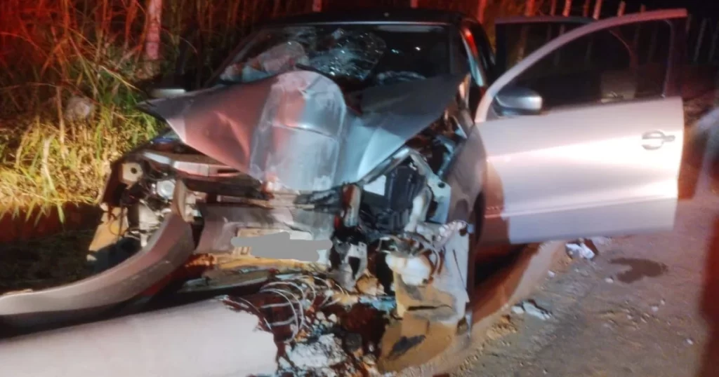 De acordo com o Corpo de Bombeiros, um Voyage bateu em um poste no bairro Fontesville com cinco pessoas.