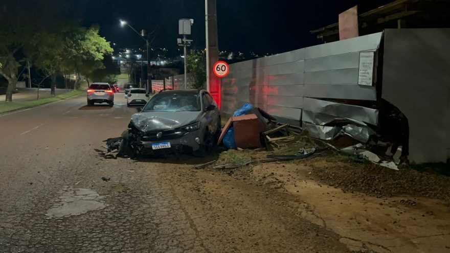 No início da noite deste domingo (3), um acidente de trânsito foi registrado na Rua Olindo Periolo, em Cascavel. Um veículo modelo Nivus, ocupado por um casal, invadiu a calçada e colidiu contra os tapumes de uma obra.