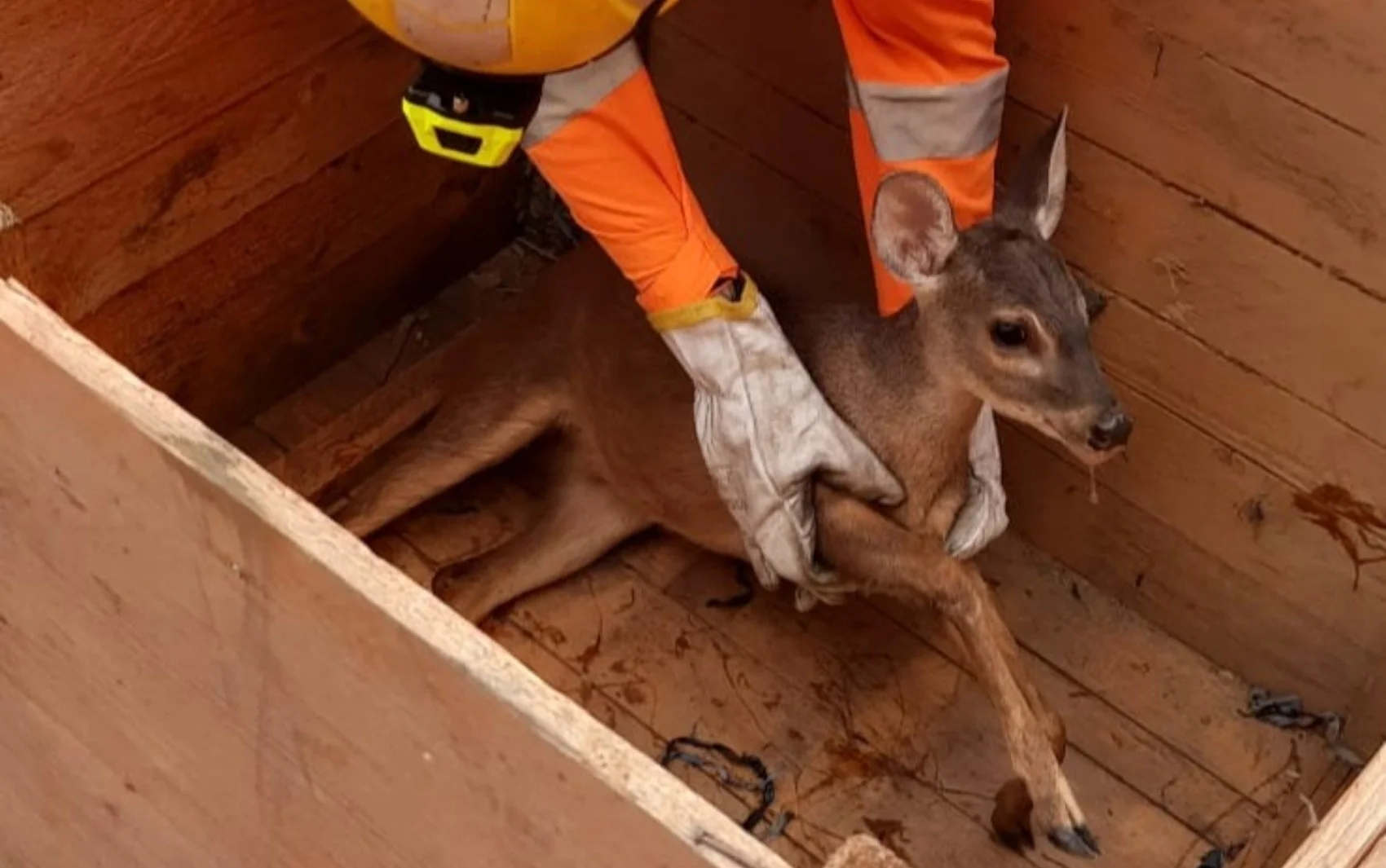 Após a captura segura, o cervo foi encaminhado para atendimento especializado em uma clínica veterinária da região, onde receberia os cuidados necessários.