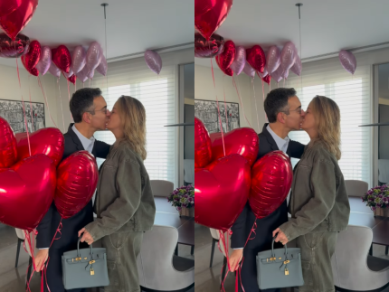 “O Amor está no Ar! E hoje é dia de celebrar! Parabéns para esta mulher e mãe que tanto me honra, me completa e me enche de felicidade. Te amoooo. Celebre muito seu dia meu amor”, disse ele ao entregar balões de coração para a apresentadora. O casal também trocou declarações.