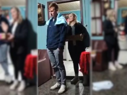 No vídeo, o rapaz permanece em silêncio enquanto é confrontado pela esposa.Reprodução/Redes Sociais