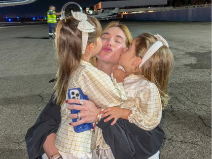 Ao voltar da China, Virginia foi recebida por Maria Flor e Maria Alice no hangar do jatinho particular da famíliaReprodução Instagram