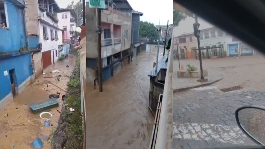 Uma forte chuva que atingiu Mariana na tarde deste sábado (24) causou alagamentos, deixou pessoas ilhadas e inundou ruas no centro da cidade histórica. Segundo a prefeitura, o transbordamento do Ribeirão da Carmo alagou a Travessa Monsenhor Rafael Coelho e outras vias.