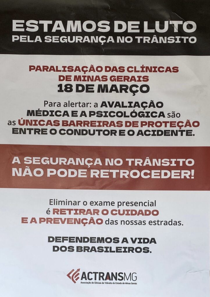De acordo com a comunicação divulgada, o movimento busca alertar a população sobre os riscos relacionados à possível flexibilização de exigências, como a avaliação presencial nos processos de habilitação e renovação da carteira de motorista.