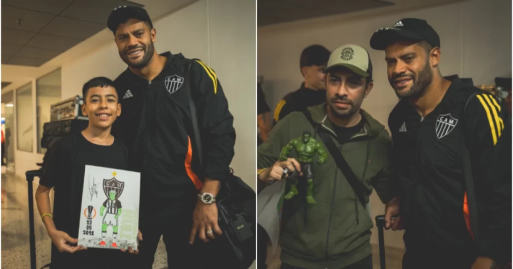 Uma criança chegou a fazer um desenho em homenagem ao atacante. O ídolo atleticano autografou a arte que fazia referência ao título da Europa League conquistado por Hulk enquanto jogava pelo Porto, em 2011.