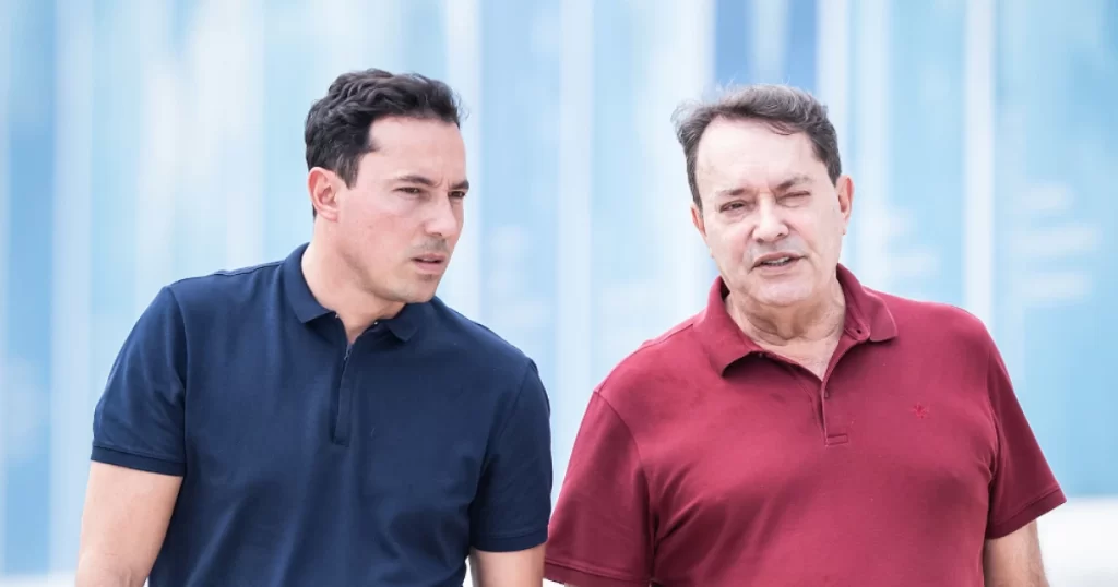Pedrinho, sócio-majoritário da SAF celeste, acompanhou a atividade comandada pelo técnico Leonardo Jardim ao lado do filho Pedro Junio, vice-presidente da SAF.
