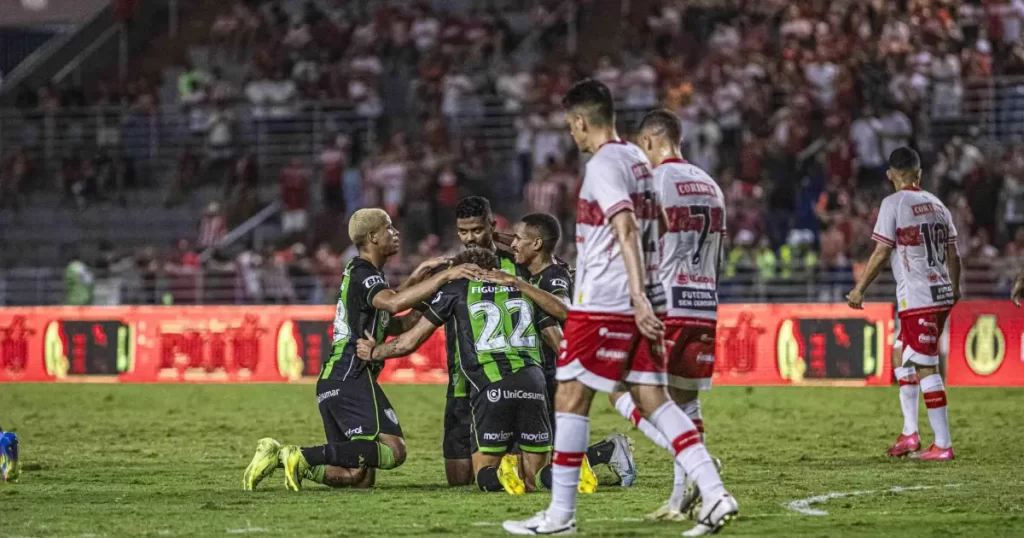 Com um a menos, o América venceu o CRB de virada por 2 a 1, nesta quinta-feira (26), em confronto válido pela 14ª rodada da Série B do Campeonato Brasileiro. O Coelho estufou as redes do Estádio Rei Pelé com o atacante Figueiredo e o meio-campista Cauan Barros, enquanto o Galo da Pajuçara marcou com Gegê.