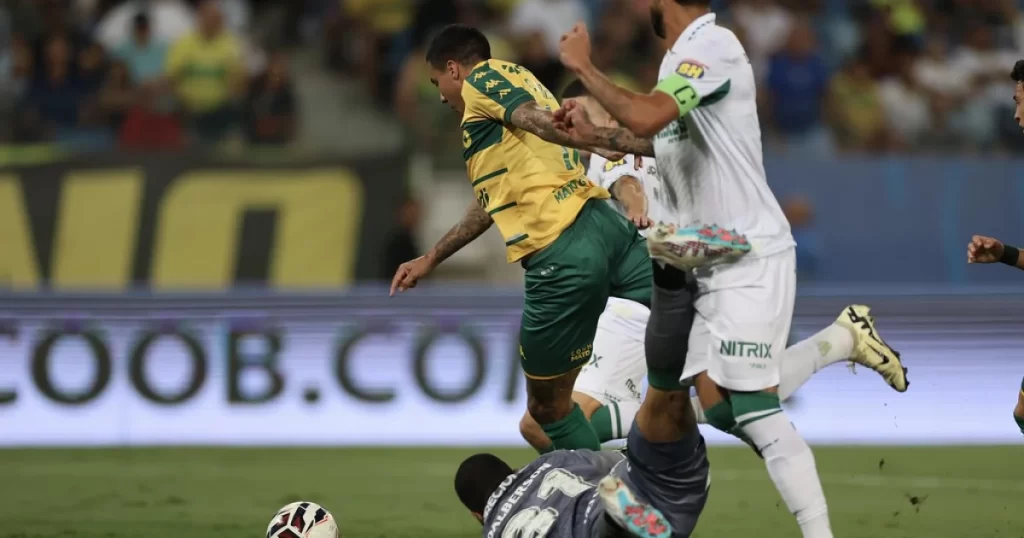 O primeiro tempo de América e Cuiabá, nesta quarta-feira (23), foi marcado por um pênalti polêmico. O árbitro Yuri Elino Ferreira da Cruz (RJ) foi “induzido” pelo VAR e assinalou falta duvidosa à favor do Dourado na Arena Pantanal, em jogo pela Série B. O lance gerou revolta de Edu Panzi, comentarista da Itatiaia.