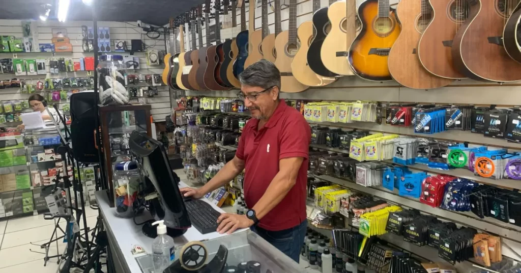 “Começamos com vinil. Era uma loja especializada em discos e eletrônicos. Depois veio o CD, mas a pirataria prejudicou muito e o formato praticamente acabou. Então, migramos para o segmento de instrumentos musicais e equipamentos de som. O que garante nossa continuidade é o atendimento. Aqui é como no interior: o cliente se acostuma com a loja, com o atendimento, cria vínculo e volta sempre”, conta Valdir.