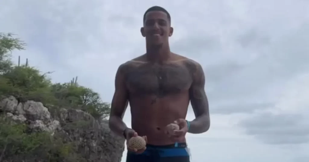 Gabriel Delfim, goleiro do Atlético, esbanjou categoria fazendo malabares com pedras na praia Daaibooi, localizada numa ilha caribenha de Curaçao. O jogador aproveitou as férias durante a pausa do futebol brasileiro para o