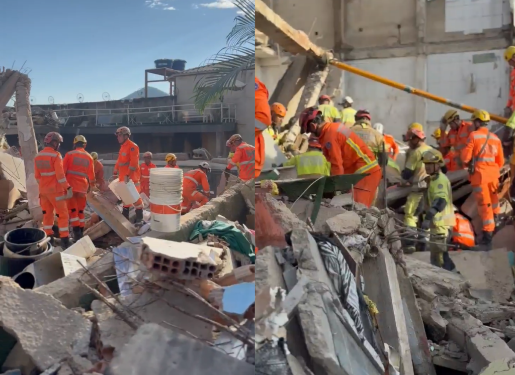 As equipes seguem realizando buscas e retirando os escombros manualmente para tentar localizar possíveis sobreviventes. As causas do desabamento ainda serão investigadas.