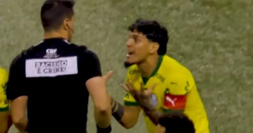 O dublador Gustavo Machado revelou nesta segunda-feira (27) a conversa entre os jogadores de Palmeiras e Cruzeiro com a arbitragem logo após a entrada de Gustavo Gómez em Wanderson. O influenciador afirmou que Raphael Klein (RS), dono do apito, pontuou que o defensor “chuta a bola” antes de acertar o atacante.
