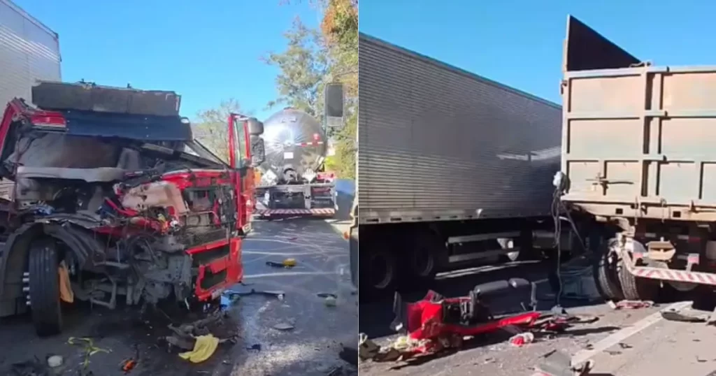 Cerca de dez minutos após a primeira ocorrência, registrada por volta da 1h30, um novo acidente foi registrado a apenas 200 metros do local, no km 516,3: um engavetamento envolvendo duas carretas e um caminhão.