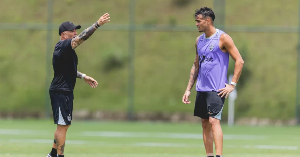 Neste cenário de retornos, o Galo deve ir a campo com: Everson; Angel Preciado; Junior Alonso, Ruan (Vitor Hugo), Renan Lodi; Alan Franco, Maycon, Igor Gomes (Victor Hugo); Bernard; Dudu e Hulk.