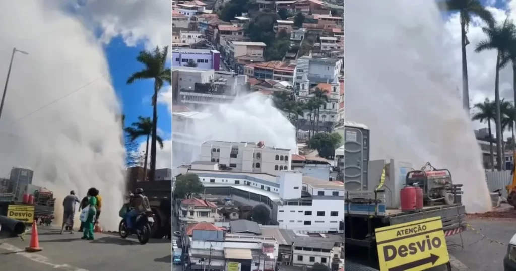 Em nota à Itatiaia, a prefeitura informou que “a intervenção foi necessária devido a um entupimento identificado no sistema de drenagem”. A Copasa realizou o fechamento emergencial da rede, mas, por se tratar de uma área com alta pressão de água, o reparo exige cuidados técnicos adicionais.