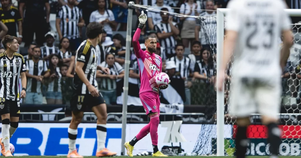 O goleiro Everson foi um dos destaques do Atlético neste sábado (25), durante a vitória por 1 a 0 sobre o Ceará, pela 30ª rodada da Série A do Campeonato Brasileiro. Com defesas importantes, o arqueiro garantiu a sétima partida do Galo sem ser vazado na Arena MRV durante a competição.