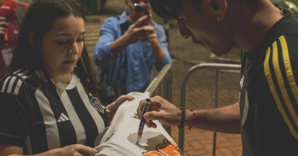 “Eu não conseguia vê-los lá [em Minas]. Eu queria a assinatura para o meu pai, que não pode vir. A gente vai deixar lá em casa. Foi um momento muito bom. Fiquei muito feliz, principalmente com o Arana, que é meu jogador favorito”, contou Isabela, em entrevista exclusiva à Itatiaia.