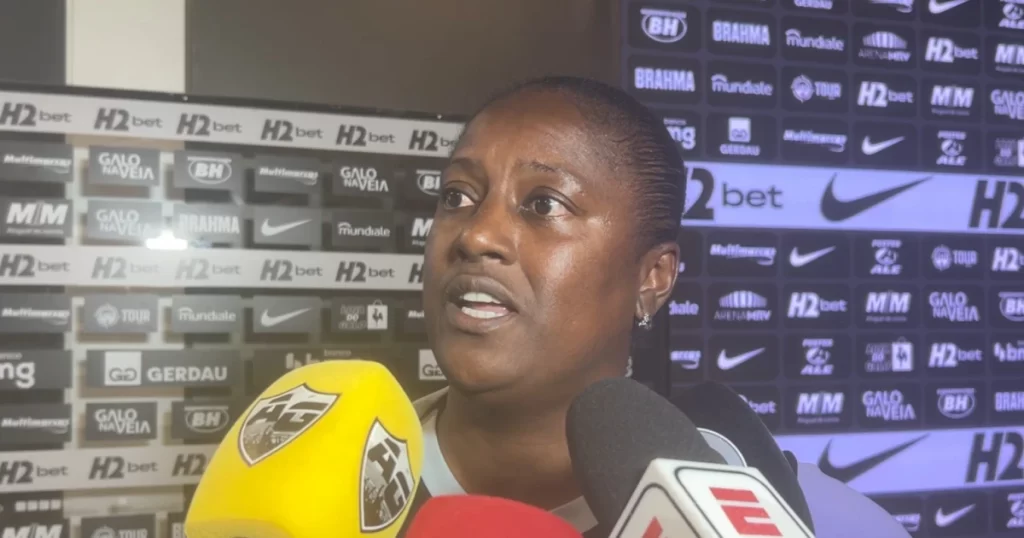 A treinadora destacou a importância de atuar na Arena MRV e contar com o apoio da torcida.