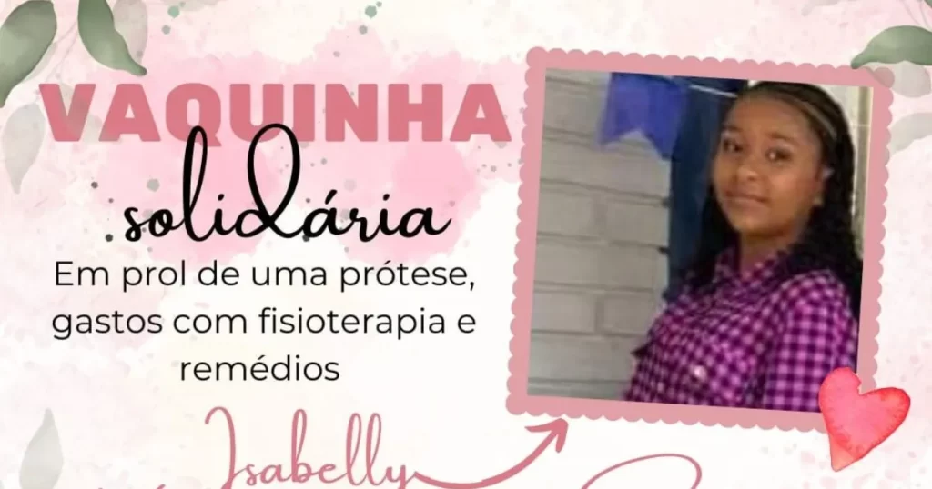 A família de Isabelly Kimberly Nunes do Santos, de 13 anos, pede ajuda para custear o tratamento da jovem que teve a perna amputada após ser