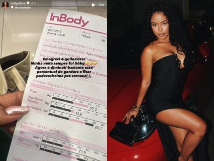 “Emagreci 4 quilos! Minha meta sempre foi 56 kg. Agora é diminuir bastante esse percentual de gordura e ficar poderosíssima para o Carnaval!”, escreveu ela nos stories, com entusiasmo. No exame, compartilhado pela influenciadora, consta que seu percentual de gordura corporal está atualmente em 20,7%.