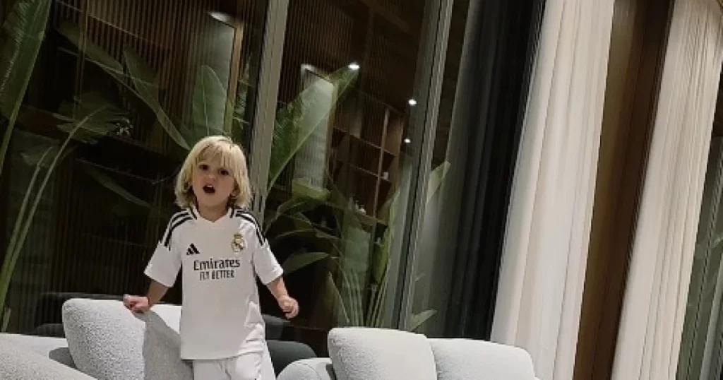 O defensor atleticano publicou um vídeo no Instagram em que brinca com o pequeno de três anos que ele jogará no time merengue. Liam, no entanto, mesmo vestido com o uniforme do clube espanhol, recusou a ideia e afirmou que atuará no Galo.