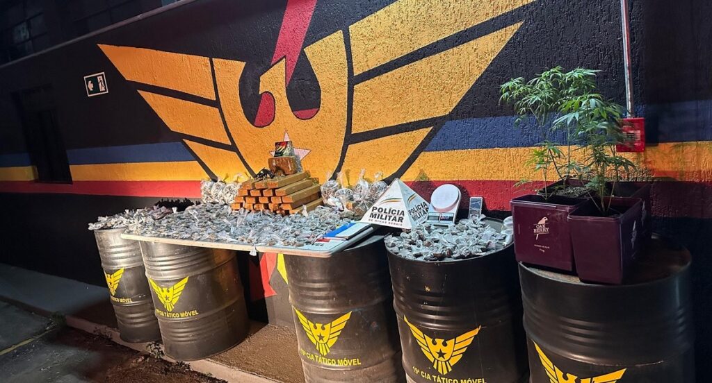 Um homem que estava foragido da Justiça foi preso na noite desta terça-feira (4 de novembro) no bairro Maria Goretti, Região Nordeste de Belo Horizonte, após ser encontrado com uma grande quantidade de drogas em uma residência. A Polícia Militar (PM) informou que ele armazenava barras e porções de maconha, muitas delas dentro da geladeira, além de crack, uma arma de fogo e pés de maconha.