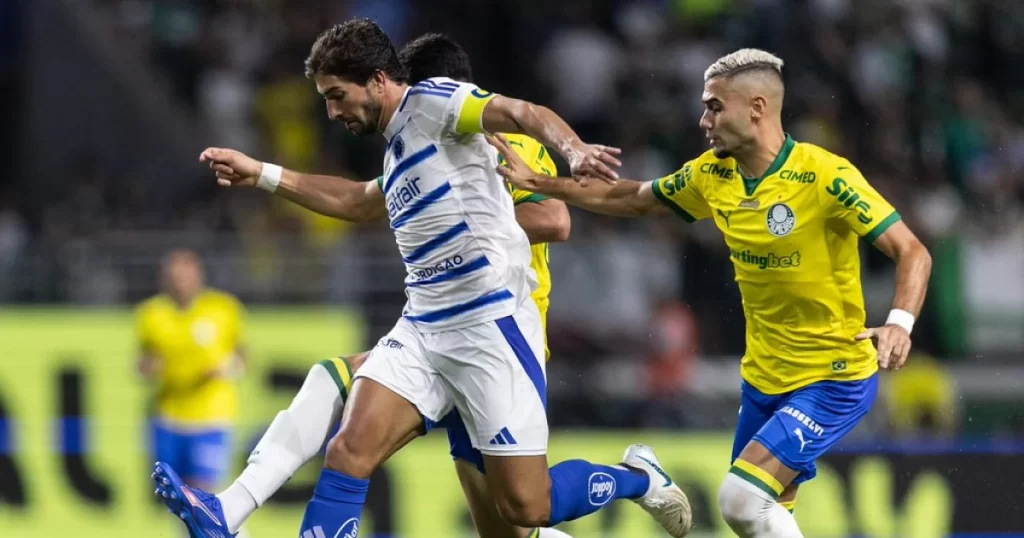 A jogada que resultou na anulação do gol do Palmeiras aconteceu aos 14 minutos do segundo tempo. Após cruzamento, Flaco López ganhou de Fabrício Bruno pelo alto, e Cássio ‘bateu roupa’ ao fazer a defesa, dando a possibilidade de rebote. Foi aí que Ramón Sosa chegou dividindo e empurrou a bola para o gol.