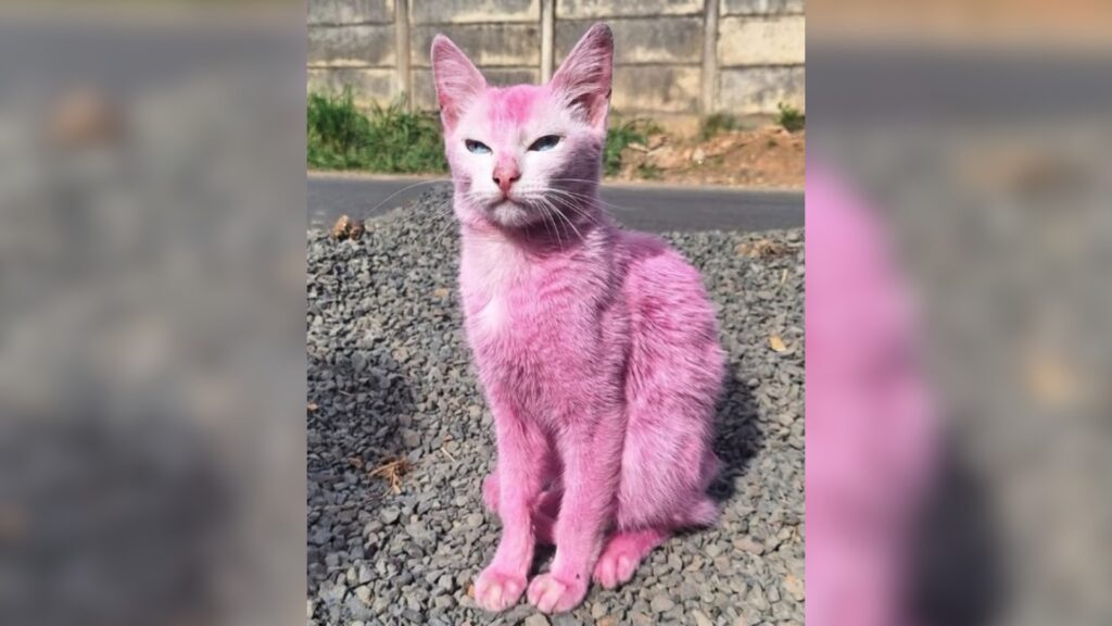 Uma gata foi resgatada em Araxá, no interior de Minas, nesta segunda-feira (21) após ser pintada de rosa com tinta para móveis pela própria tutora. O caso veio à tona quando a protetora animal Fernanda Castelha viu um vídeo do animal circulando nas redes sociais e acionou a polícia.
