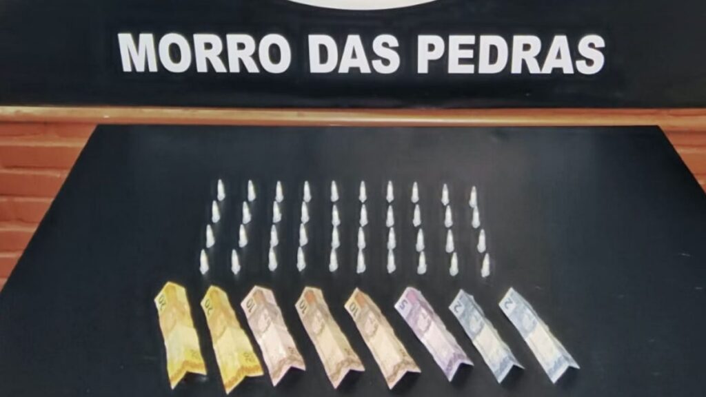 Os policiais alcançaram o homem e realizaram a abordagem. Na busca pessoal, foram encontrados 79 reais em dinheiro e um telefone celular. No local onde ele tentou se esconder, a equipe localizou 40 pinos de cocaína. Segundo o setor de inteligência da Polícia Militar, a função do preso era distribuir entorpecentes para outros vendedores na região. No local da prisão, os militares identificaram símbolos e marcas das duas organizações criminosas.