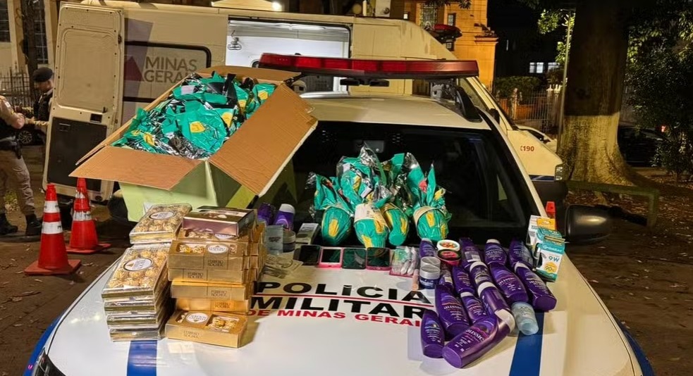 A Polícia Militar prendeu três mulheres e um homem na noite de terça-feira, dia 10 de março de 2026, sob a suspeita de furtarem ovos de Páscoa, caixas de chocolate e itens de higiene em estabelecimentos comerciais. O grupo agiu em um supermercado em Contagem e em uma drogaria no bairro Padre Eustáquio, na região Noroeste de Belo Horizonte. Segundo a corporação, a mercadoria levada foi avaliada em mais de R$ 1 mil. A polícia foi chamada por um funcionário da drogaria que notou a movimentação dos suspeitos e avisou as autoridades.