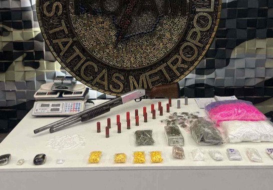 No interior da casa, os policiais encontraram balanças de precisão, haxixe e detectaram forte odor de maconha. Durante a busca, foram apreendidos 40 quilos de cocaína, 35 porções de maconha e haxixe, comprimidos de ecstasy, uma espingarda com munições e uma caderneta com anotações do tráfico.