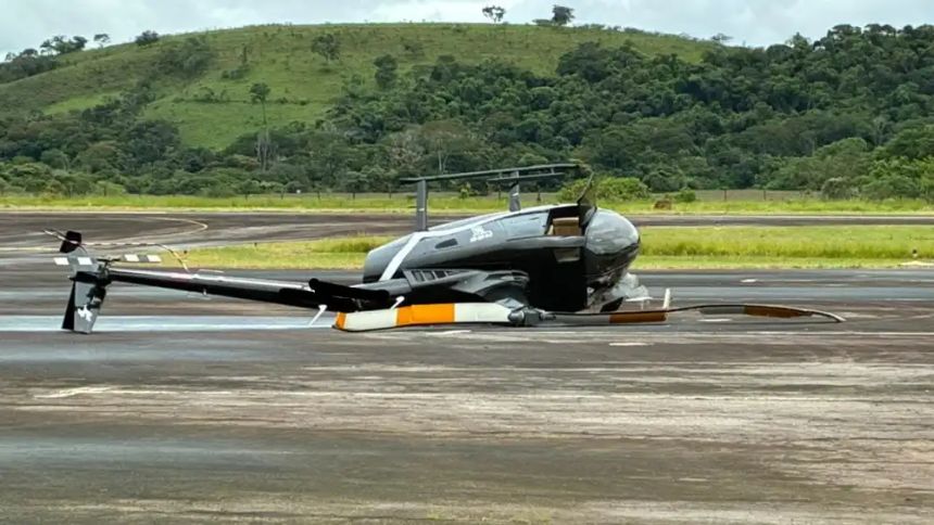 A Polícia Militar foi acionada para atender uma ocorrência de queda de aeronave. No local, os militares encontraram o helicóptero danificado e com vazamento de combustível, mas sem nenhum ocupante. Imagens de segurança mostraram que um homem invadiu a área, entrou na aeronave, acionou os motores e tentou decolar, mas não conseguiu sustentar o voo.